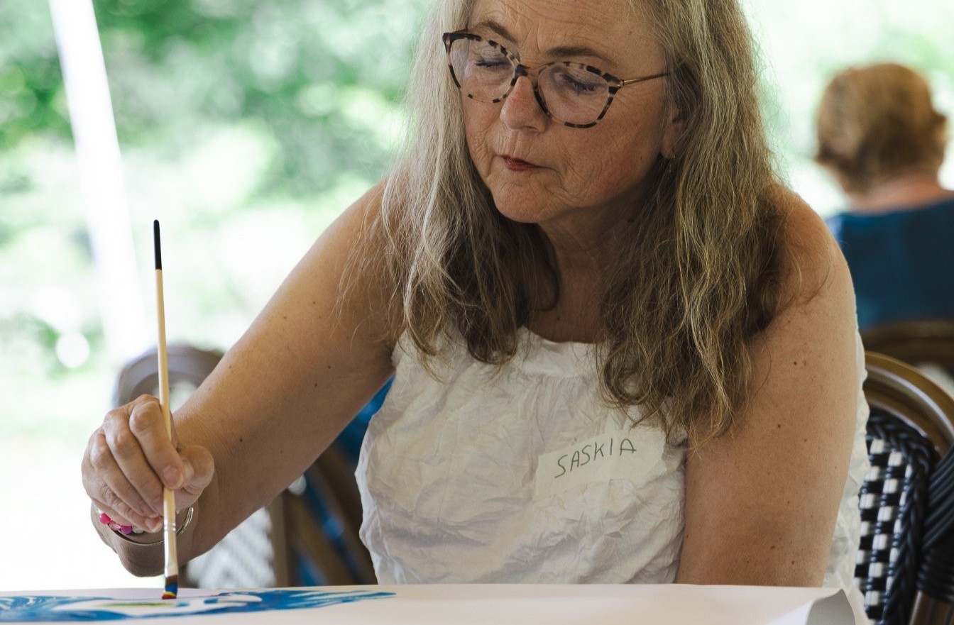 "Vaak kwam ik onrustig binnen bij de maaksessies en ging ik rustig weer weg. Er hoefde niets en er mocht spontaan gemaakt worden met anderen. Juist het DOEN, vanuit deze verbondeneid, gaf mij ruimte."